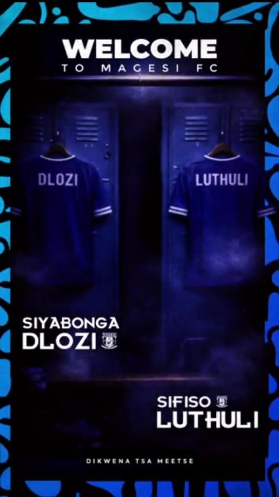 Magesi FC signed 2 new players from Orlando Pirates Posted on 2026-01-212026-02-18 By Thami Mshengu No Comments on Magesi FC signed 2 new players from Orlando Pirates Magesi FC signed Siyabonga Ndlozi and Sifiso Luthuli from Orlando Pirates on a loan deal until the end of 2025/26 season. (Visited 18 times, 1 visits today)Share this:TwitterWhatsAppPrintTumblrLinkedInFacebookTelegramRedditPocket Related Betway Premiership Tags:Sifiso Luthuli, Siyabonga Ndlozi