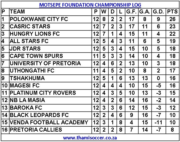 Motsepe Foundation Championship Log 11 January 2023 Posted on 2023-01-112023-01-11 By Thami Mshengu No Comments on Motsepe Foundation Championship Log 11 January 2023 (Visited 109 times, 1 visits today)Share this:TwitterWhatsAppPrintTumblrLinkedInFacebookTelegramRedditPocket Related Motsepe Foundation Championship Tags:Polokwane City FC