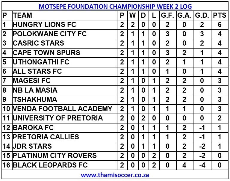 Motsepe Foundation Championship Log 11 September 2022 Posted on 2022-09-122022-09-12 By Thami Mshengu No Comments on Motsepe Foundation Championship Log 11 September 2022 (Visited 132 times, 1 visits today)Share this:TwitterWhatsAppPrintTumblrLinkedInFacebookTelegramRedditPocket Related Motsepe Foundation Championship Tags:Hungry Lions FC