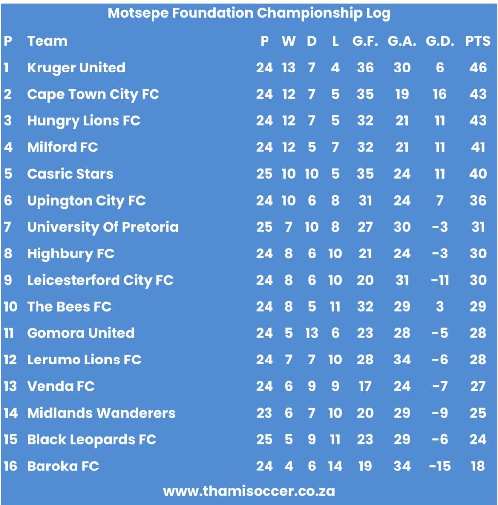 Motsepe Foundation Championship Log 17 April 2026 Posted on 2026-04-172026-04-17 By Thami Mshengu No Comments on Motsepe Foundation Championship Log 17 April 2026 (Visited 33 times, 33 visits today)Share this:TwitterWhatsAppPrintTumblrLinkedInFacebookTelegramRedditPocket Related Motsepe Foundation Championship Tags:Kruger United