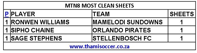 MTN8 Most Clean Sheets 13 August 2023 Posted on 2023-08-132023-08-23 By Thami Mshengu (Visited 42 times, 1 visits today)Share this:TwitterWhatsAppPrintTumblrLinkedInFacebookTelegramRedditPocket Related MTN8 Tags:Ronwen Williams, Sage Stephens, Sipho Chaine