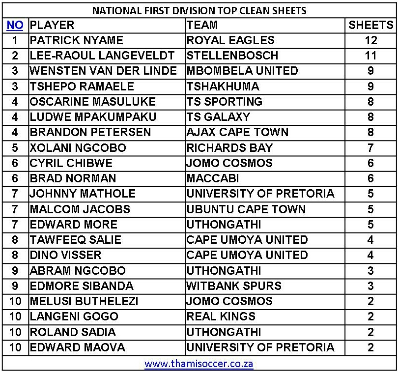 National First Division Top Goal Scorers 16 March 2019 Posted on 2019-03-17 By Thami Mshengu No Comments on National First Division Top Goal Scorers 16 March 2019 (Visited 30 times, 1 visits today)Share this:TwitterWhatsAppPrintTumblrLinkedInFacebookTelegramRedditPocket Related Motsepe Foundation Championship