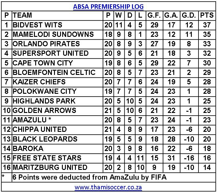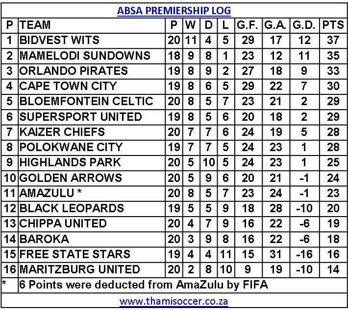 ABSA Premiership Log 20 February 2019