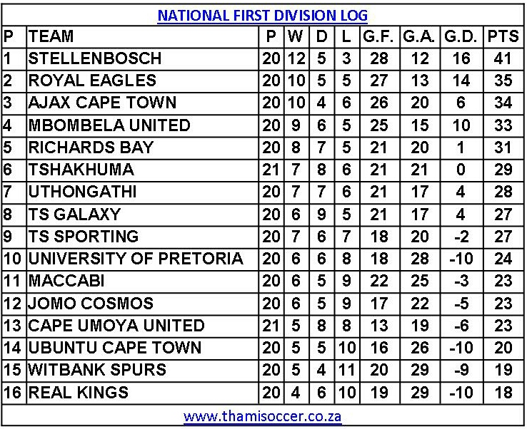 National First Division Log 22 February 2019