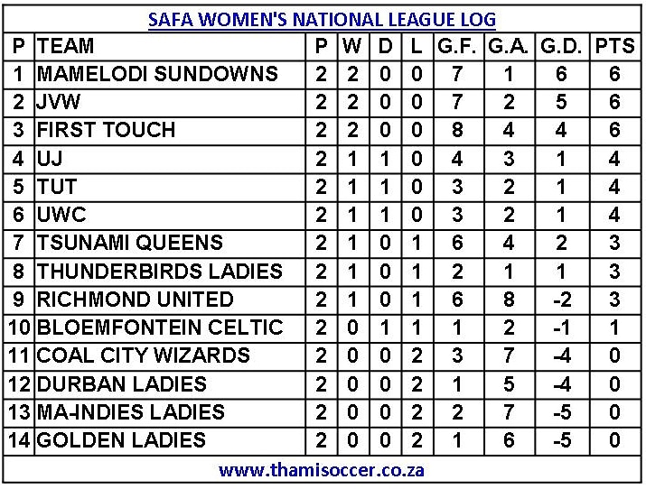 SA National National Women’s League Log 1 May 2021 Posted on 2021-05-012021-05-03 By Thami Mshengu No Comments on SA National National Women’s League Log 1 May 2021 (Visited 136 times, 1 visits today)Share this:TwitterWhatsAppPrintTumblrLinkedInFacebookTelegramRedditPocket Related Hollywoodbets Super League Tags:Mamelodi Sundowns Ladies