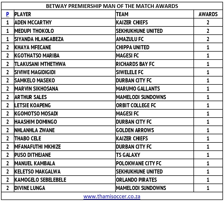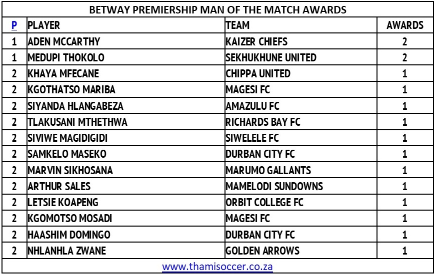 Betway Premiership Man Of The Match Awards 20 August 2025