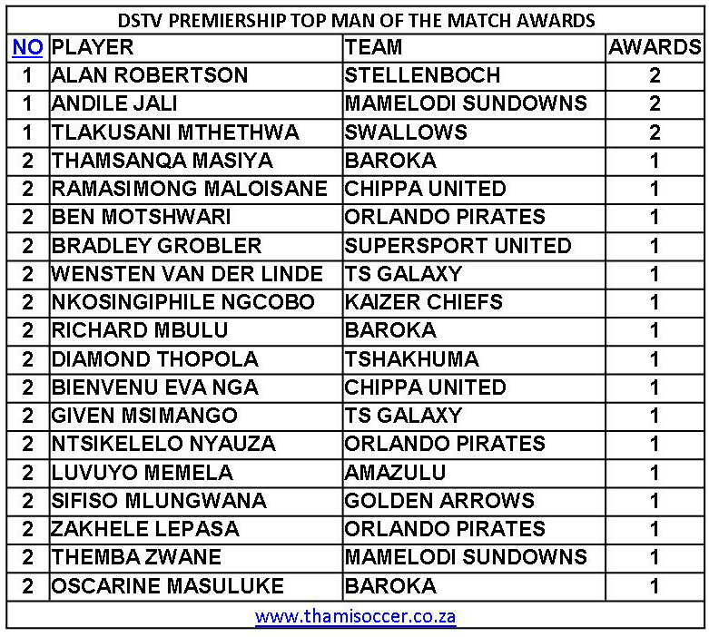 Alan Robertson of Stellenbosch was voted as the DStv Premiership man of the match against Swallows at Danie Craven Stadium. Sunday, 25 October 2020Stellenbosch 1-1 Swallows, Danie Craven StadiumRuzaigh Gamildien opened the scoring for the Birds through the penalty spot. Robyn Johannes levelled matters for Stellies through the penalty penalty spot. Both goals were scored…
