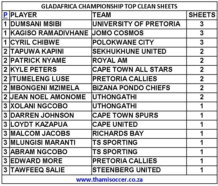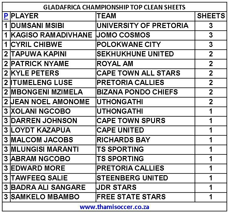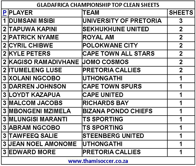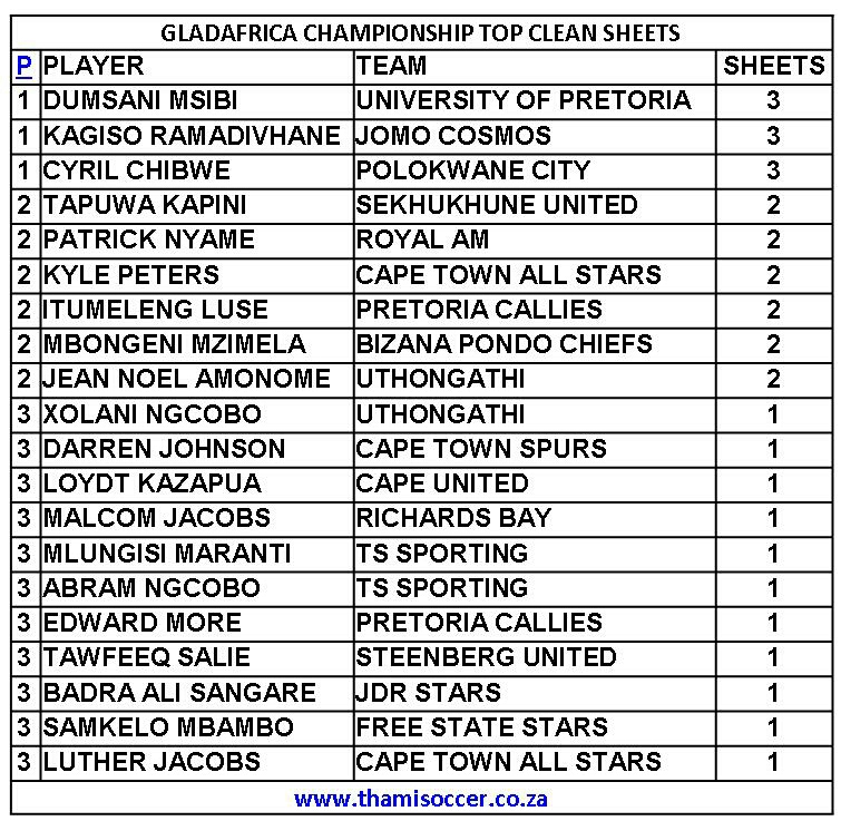 GladAfrica Championship Top Clean Sheets 2 January 2021 Posted on 2021-01-032021-02-12 By Thami Mshengu No Comments on GladAfrica Championship Top Clean Sheets 2 January 2021 Motsepe Foundation Championship