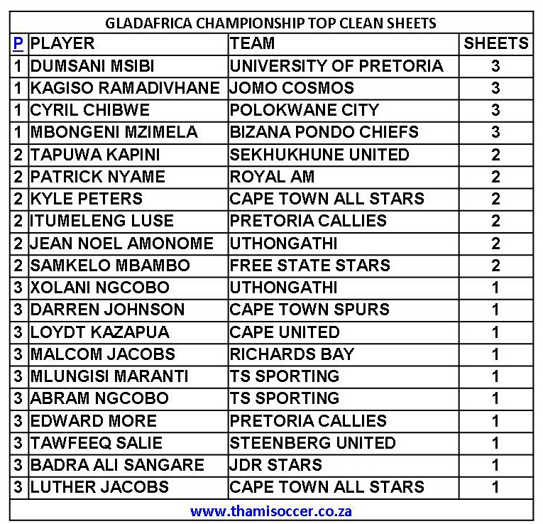 GladAfrica Championship Top Clean Sheets 3 January 2021 Posted on 2021-01-032021-02-12 By Thami Mshengu No Comments on GladAfrica Championship Top Clean Sheets 3 January 2021 Motsepe Foundation Championship
