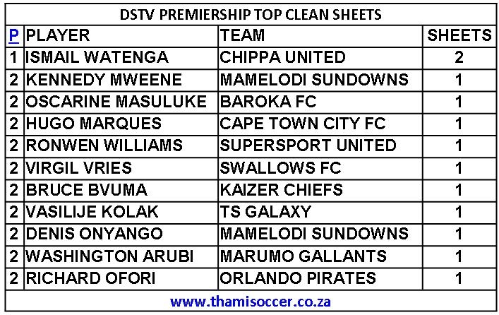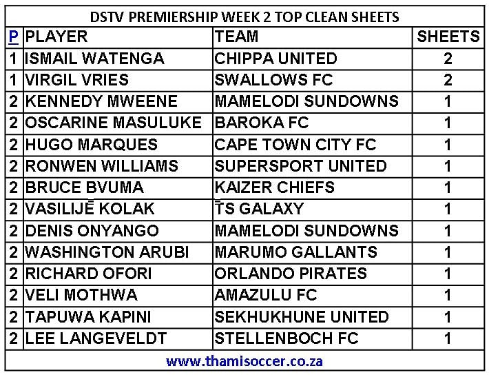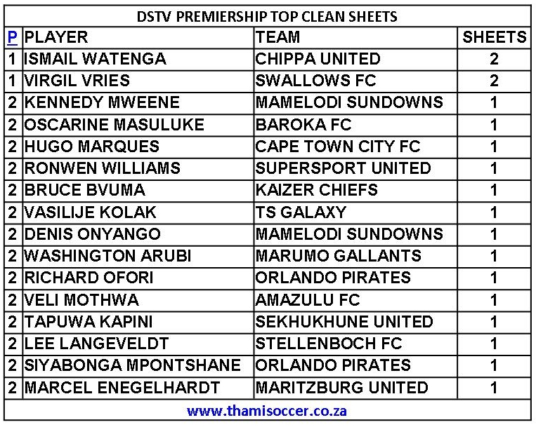DStv Premiership Top Clean Sheets 25 August 2021 Posted on 2021-08-262021-08-26 By Thami Mshengu No Comments on DStv Premiership Top Clean Sheets 25 August 2021 Betway Premiership