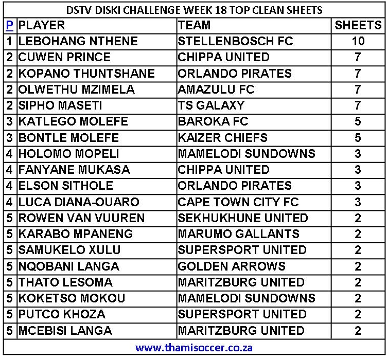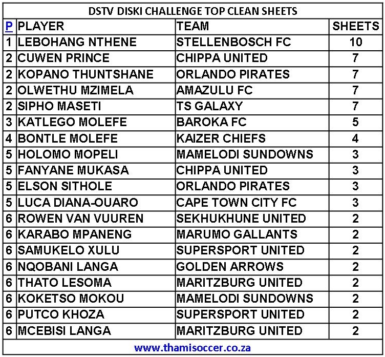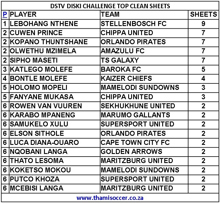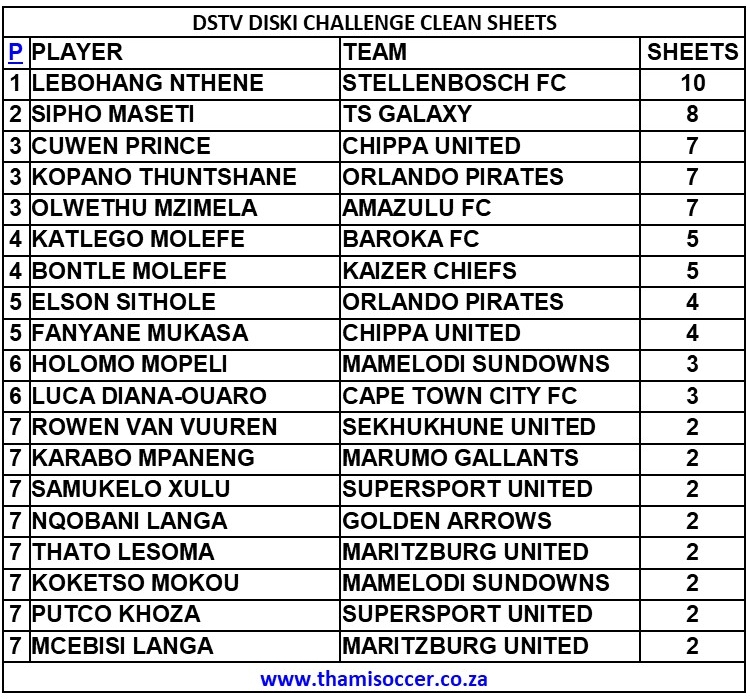 DStv Diski Challenge Top Clean Sheets 13 March 2022