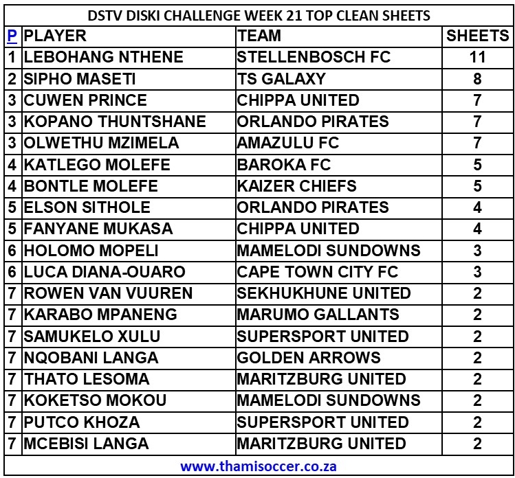 Lebohang Nthene of Stellenbosch FC the first goalkeeper to keep ten clean sheets in the DStv Diski Challenge 2021/22 season. Saturday, 19 February 2022Marumo Gallants 1-3 SuperSport United, Old Peter Mokaba StadiumNeo Rapoo opened the scoring for the visitors. Kamogelo Ngwane levelled matters for the hosts. Both sides went into halftime break levelled at 1-1…