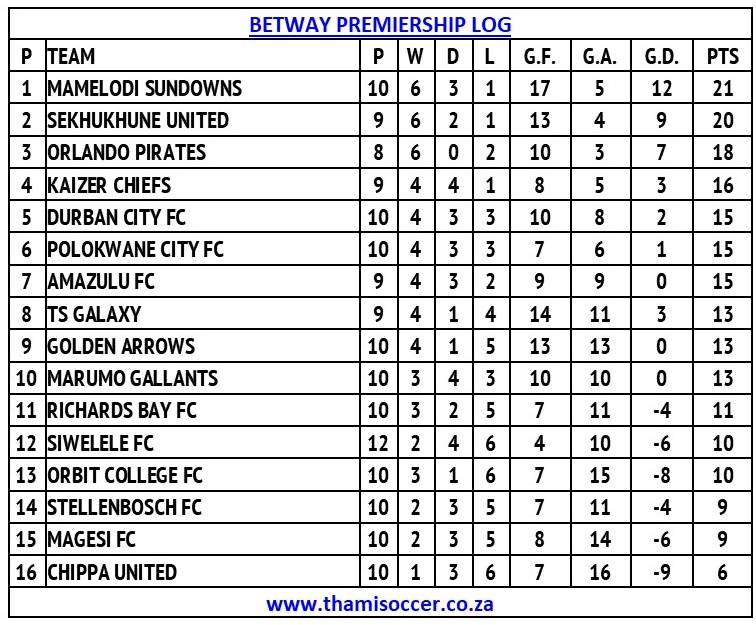 Betway Premiership Log 22 October 2025