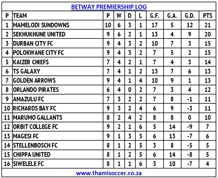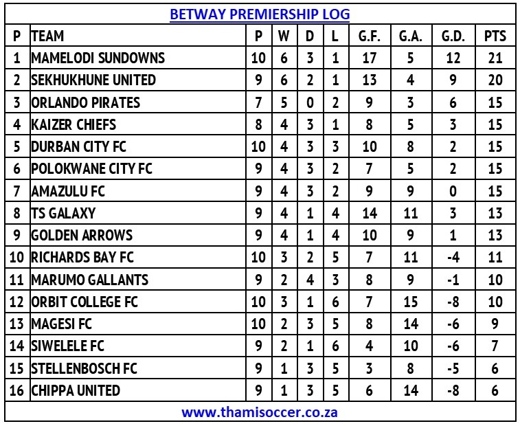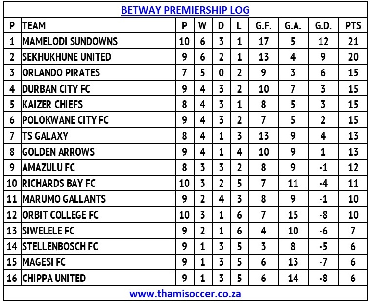 Betway Premiership Log 22 October 2025
