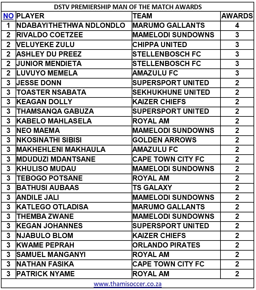 DStv Premiership Man Of The Match Awards 16 March 2022