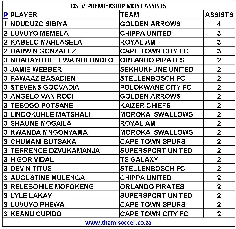DStv Premiership Most Assists 26 November 2023 Posted on 2023-11-262023-11-27 By Thami Mshengu No Comments on DStv Premiership Most Assists 26 November 2023 DStv Diski Challenge