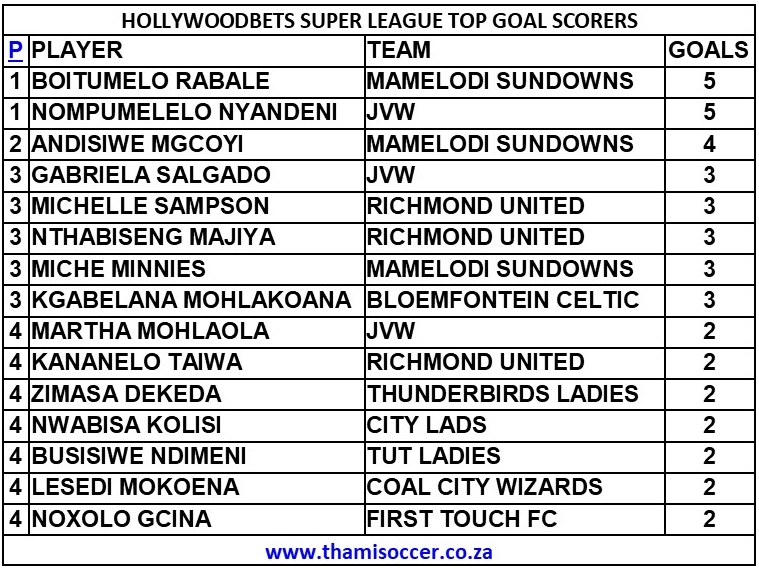 Hollywoodbets Super League Top Goal Scorers 20 August 2022