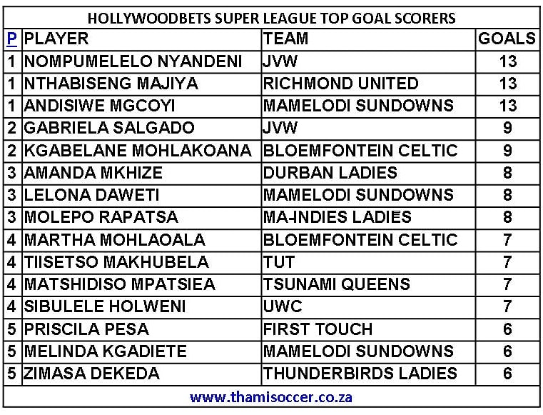 Nompumelelo Nyandeni netted a hat-trick for JVW against University of Johannesburg at Wits Football Stadium. Saturday, 13 November 2021 Bloemfontein Celtic Ladies 1-1 Durban Ladies, Siwelele ParkCharmaine Mhlongo opened the scoring for the visitors. The away side went into the halftime break leading by 1-0. Litseoana Maloro levelled matters for the hosts on the second…