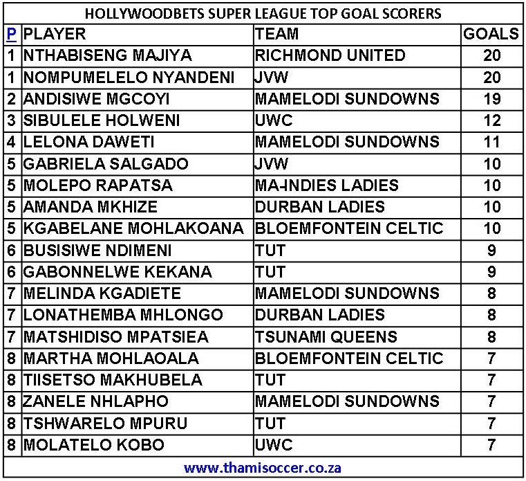 Hollywoodbets Super League Top Goal Scorers 23 April 2022