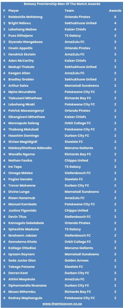 Relebohile Mofokeng is the Betway Premiership player Of the month for March 2026 Posted on 2026-03-262026-03-31 By Thami Mshengu No Comments on Relebohile Mofokeng is the Betway Premiership player Of the month for March 2026 Relebohile Mofokeng of Orlando Pirates is the Betway Premiership player of the month for March 2026. In the period, he scored four goals and also walked away with one man of the match award. Betway Premiership