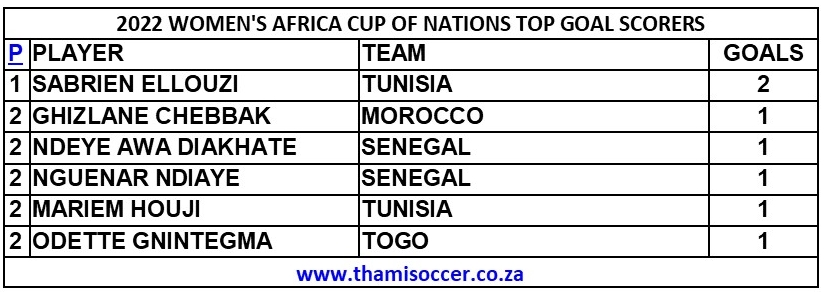 Women’s Africa Cup of Nations Top Goal Scorers 7 July 2022