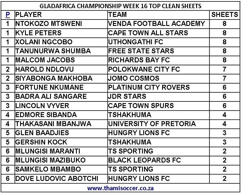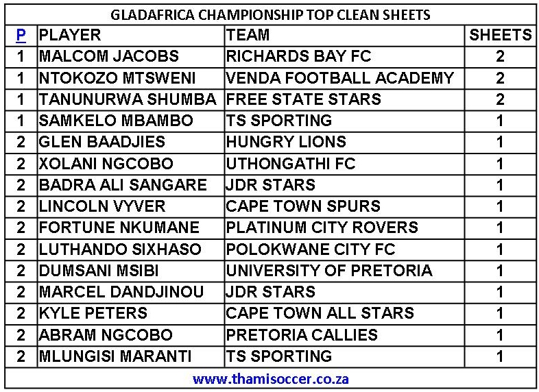 GladAfrica Championship Top Clean Sheets 11 September 2021 Posted on 2021-09-122021-09-13 By Thami Mshengu No Comments on GladAfrica Championship Top Clean Sheets 11 September 2021 Motsepe Foundation Championship