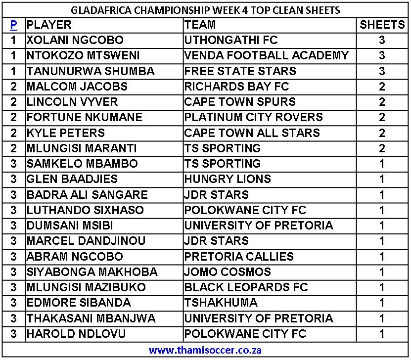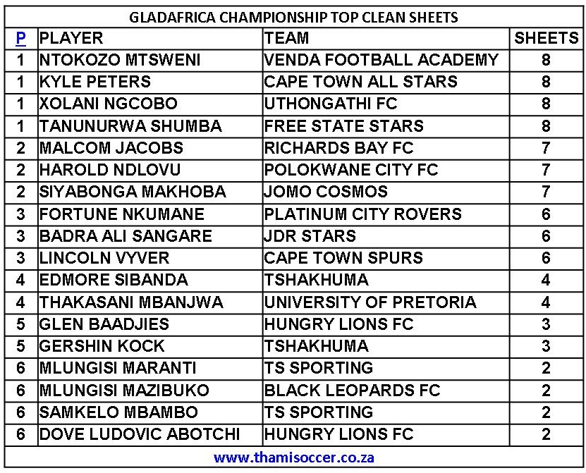 GladAfrica Championship Top Clean Sheets 24 October 2021 Posted on 2021-10-242021-10-26 By Thami Mshengu Motsepe Foundation Championship