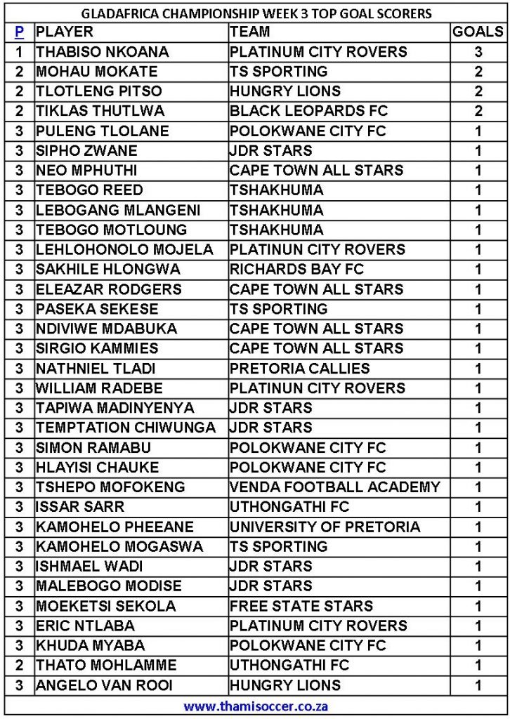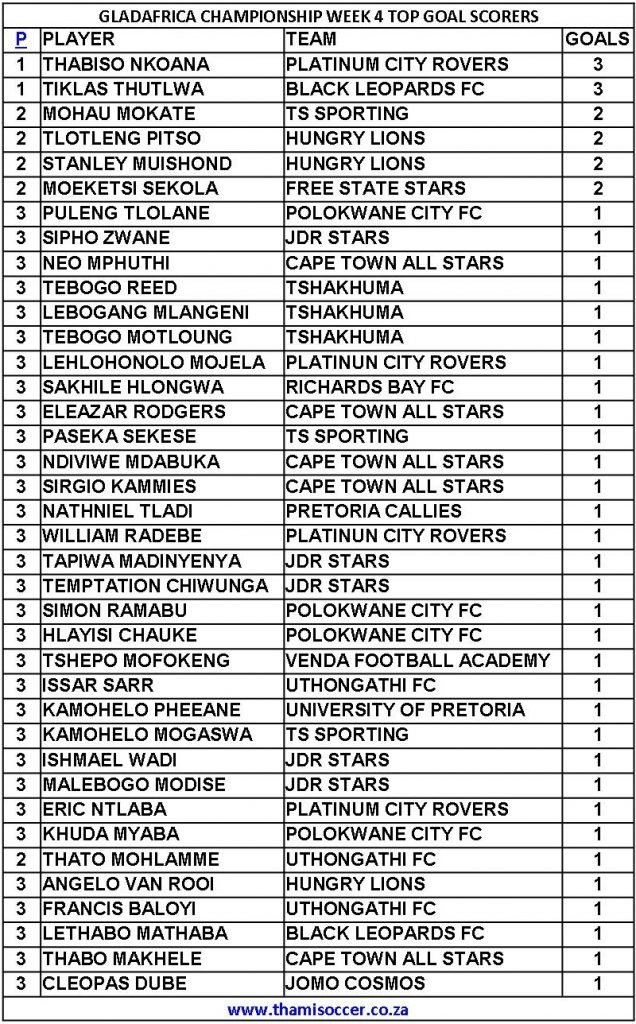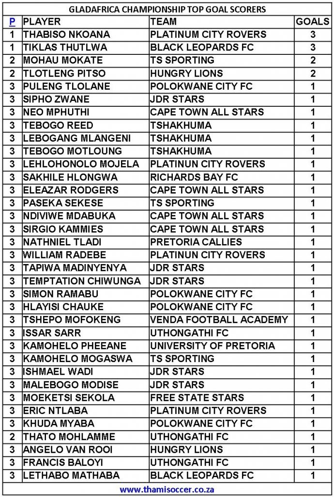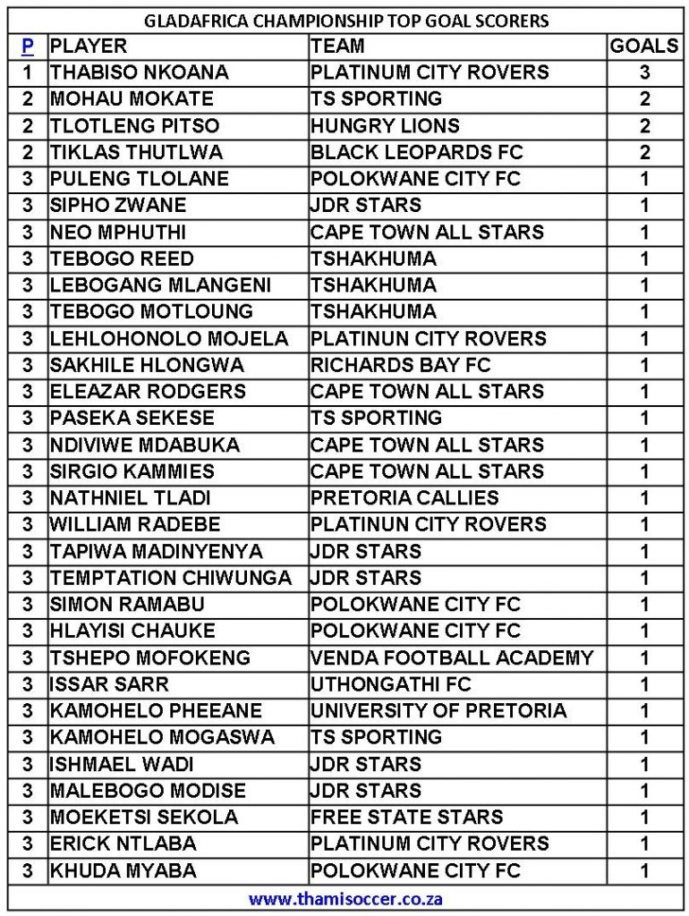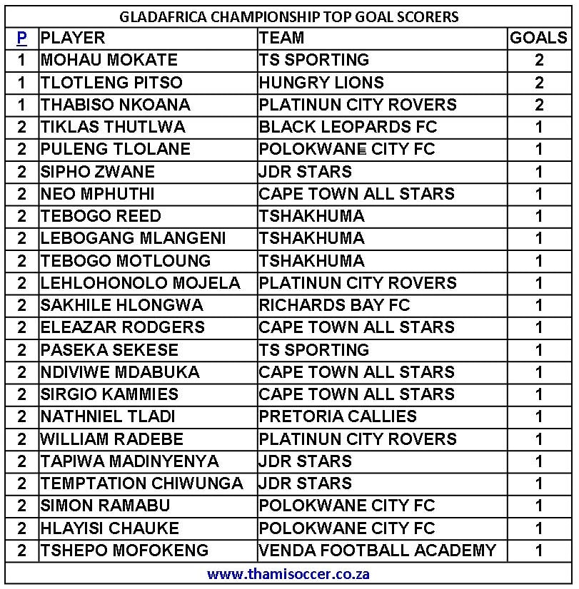 GladAfrica Championship Top Goal Scorers 19 September 2021