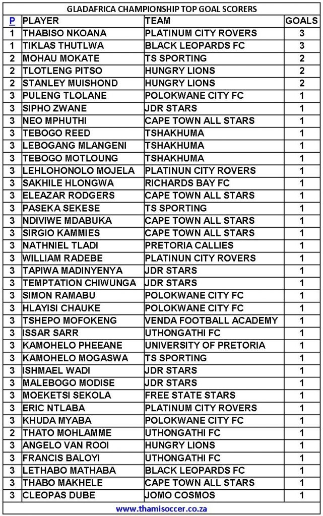 GladAfrica Championship Top Goal Scorers 25 September 2021