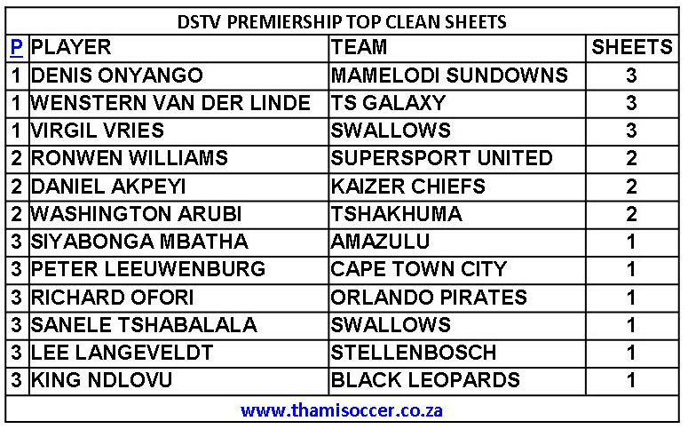 DStv Premiership Top Clean Sheets 25 November 2020 Posted on 2020-11-262020-11-26 By Thami Mshengu No Comments on DStv Premiership Top Clean Sheets 25 November 2020 Betway Premiership