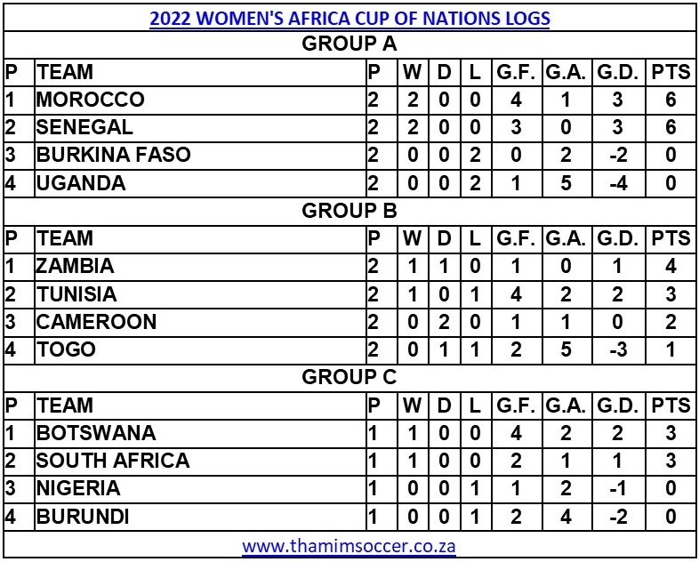 Women’s Africa Cup of Nations Logs 6 July 2022